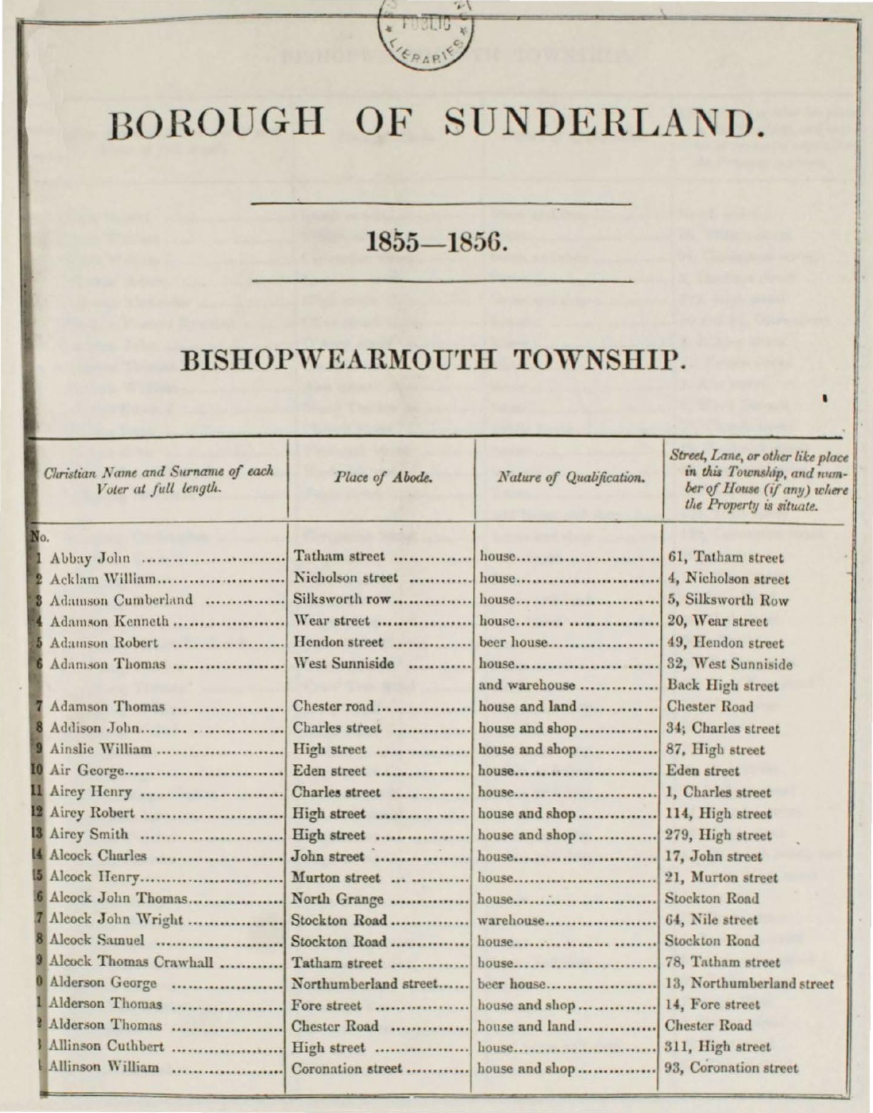 Ad:uns.011 Robert .........••.......... 1-JcnJon street ............... beer house... .................. 49, Ilendon !!trcct