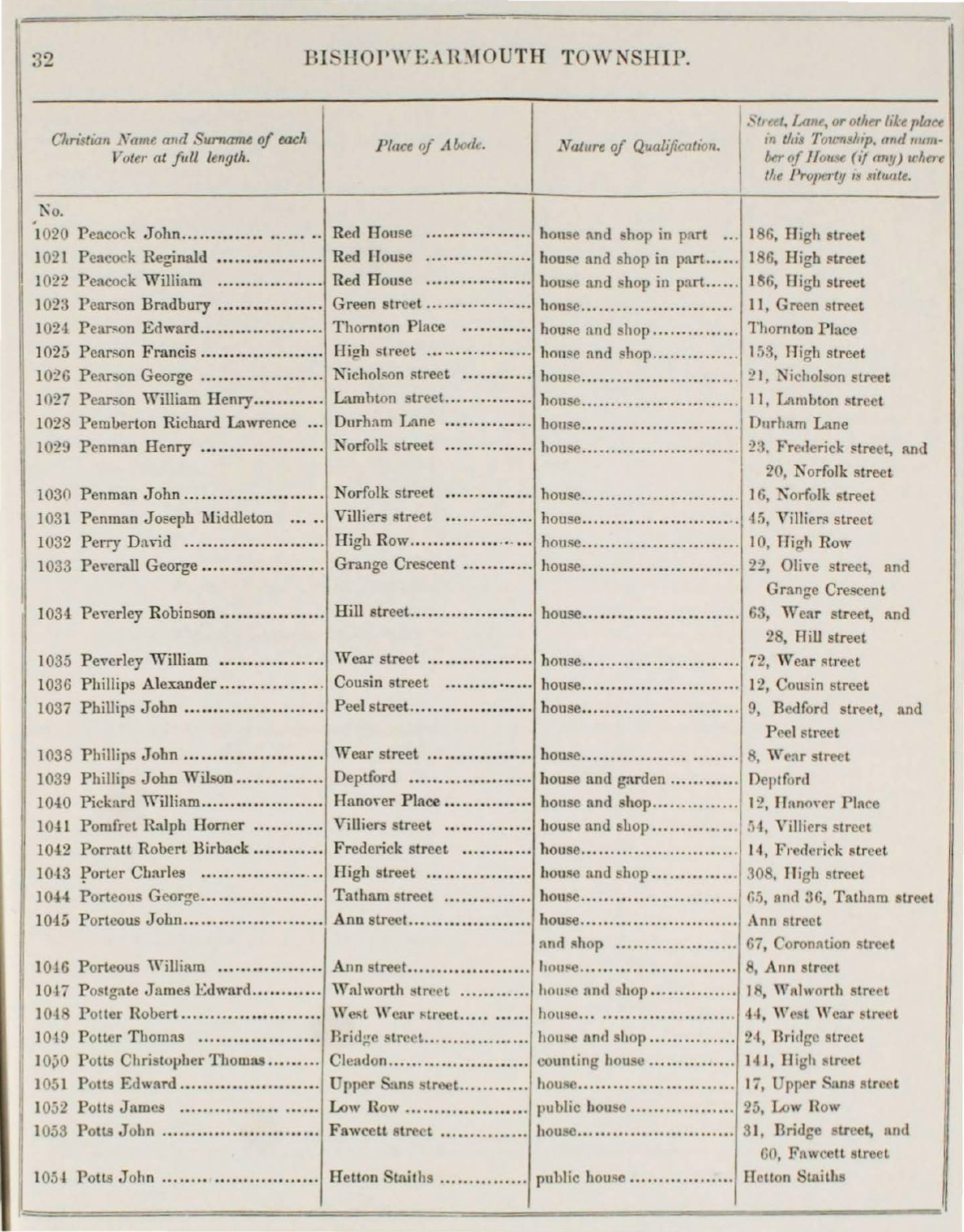 1028 Pemberton Richard Lawrence ... Durham Lone ............... ho1p1e........................... OurhRm L'lne
