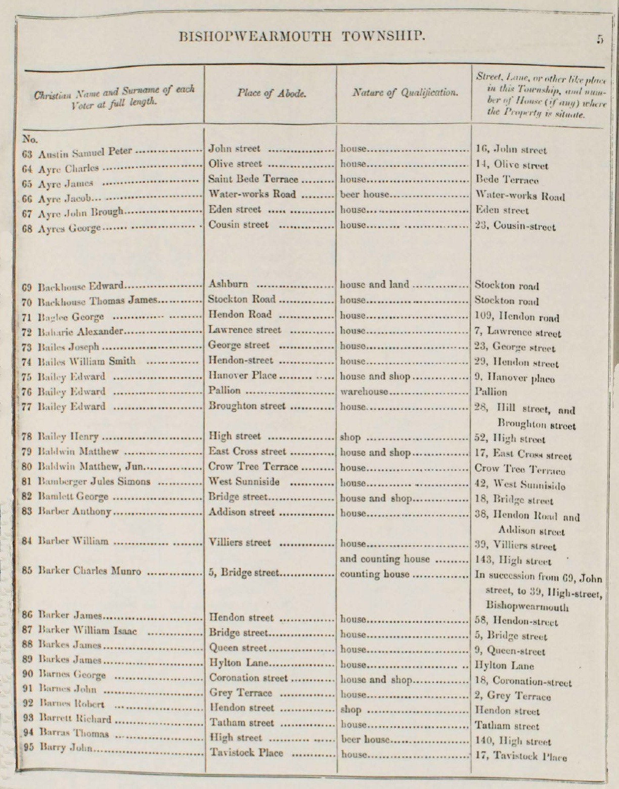 85 Bu1L.er Cliarlcs Munro ... ... ......... 5, Ilridgcstreet...... ... ...... counting house ......... ......